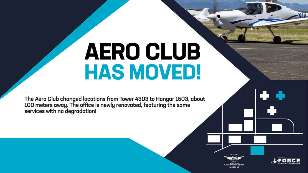 The Yokota Aero Club & Flight Training Center is available to service members, civilians and families authorized use of 374th FSS Morale, Welfare and Recreation (MWR) facilities.