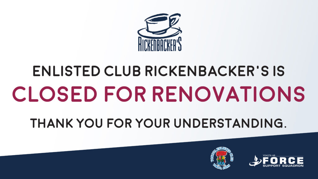 Rickenbacker’s (Enlisted Club) will be closed for renovations starting Monday, 6 April.