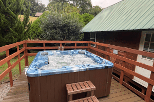 .All cabins include living room with futon couch, 65″ Smart TV, kitchen with microwave, fridge, two-burner stove, pots, pans, dishes, glasses, utensils, towels, shampoo and soap. All cabins include a charcoal grill & picnic table.