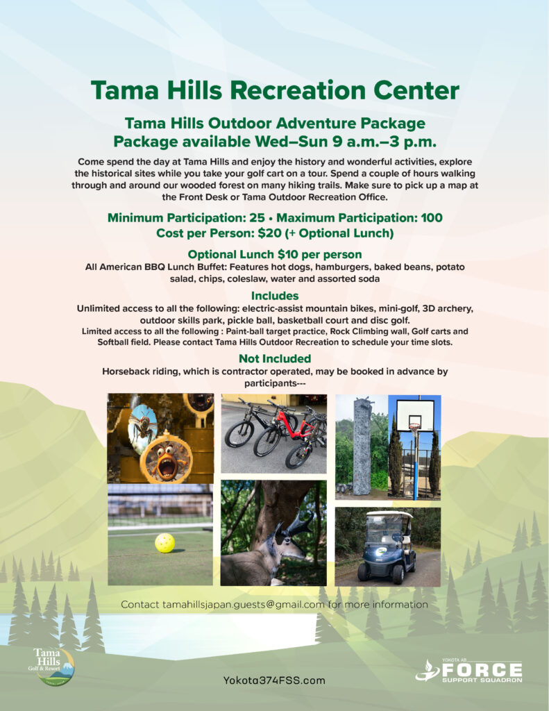 | Tama Outdoor Recreation DSN: 227-5248 Comm: 080.3465.0745 tamahillsjapan.outdoor@gmail.com |